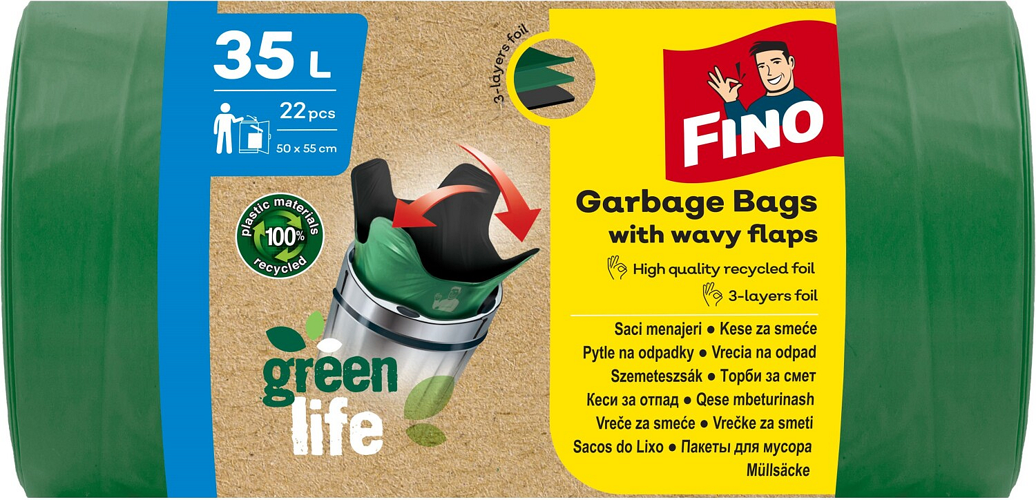 Ekologiczna seria FINO GREEN LIFE została stworzona z myślą o środowisku. Skierowana jest na jednorazowe produkty wykonane z bambusa lub PLA, worki na śmieci z recyklingowanego polietylenu, gąbki i ściereczki z włókien bambusowych, recyklingowanego poliestru lub włókien z agawy i zmielonych skorup orzechów.