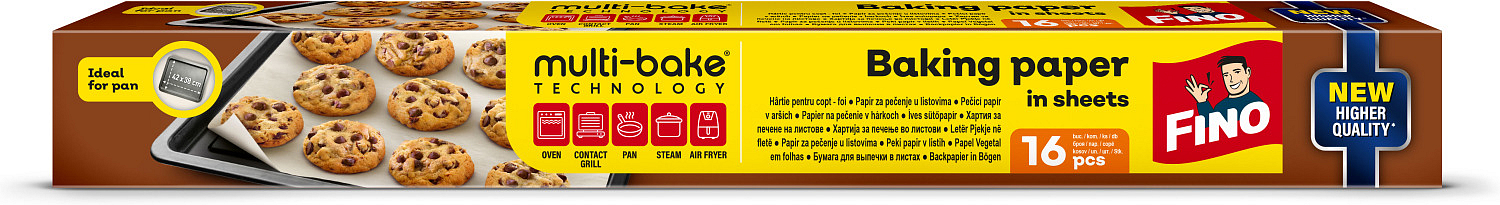Pieczenie dań i słodkości nigdy nie było łatwiejsze. Papier do pieczenia FINO jest idealny do przygotowywania wszystkich rodzajów pieczonych potraw i ciast. Dwustronna silikonowa warstwa papieru zapobiega przywieraniu żywności.