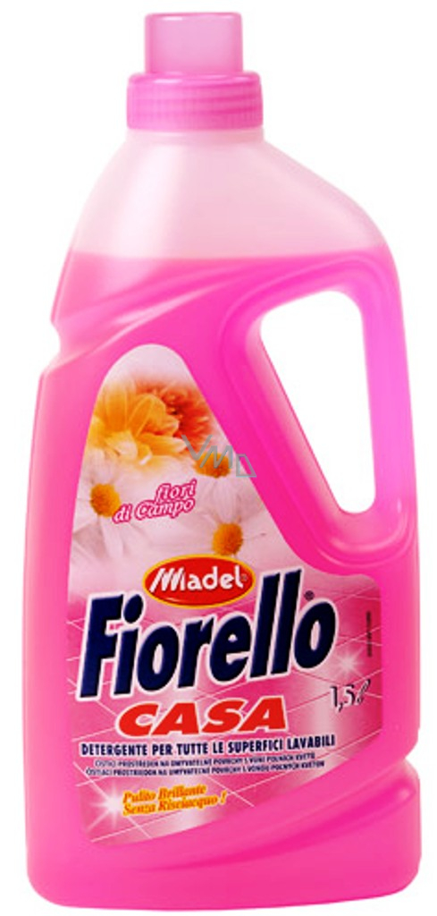 Fiorello Casa s vůní polních květů dokonale vyčistí, naleští a odmastí podlahy a veškeré omyvatelné povrchy. Odstraňuje nečistoty bez potřeby oplachování a zanechává čištěné povrchy zářící čistotou a příjemně provoněné.