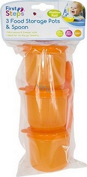 First Steps Cestovní sada na krmení oranžová 3 dózy + lžíce