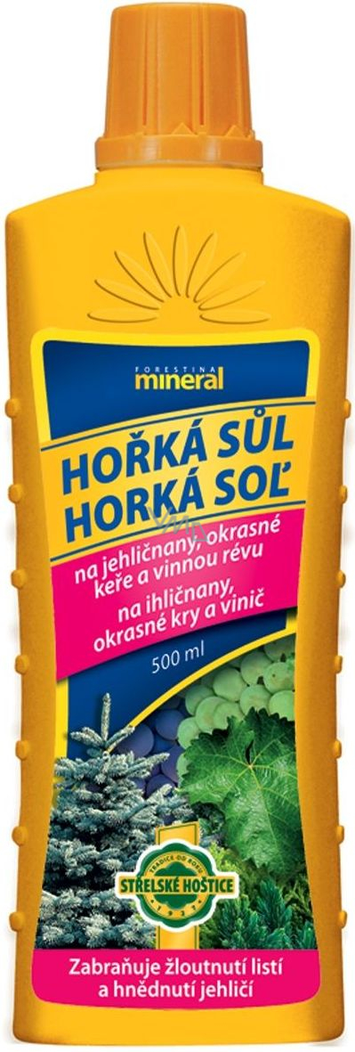 Tekutá hořká sůl je rychle působící hnojivo, které odstraňuje nedostatek hořčíku v půdě a jeho použití není časově omezeno. Je vhodné pro různé druhy plodin - okrasných rostlin, květin, ovocných stromů, drobného ovoce, zeleniny, jehličnanů atd.
