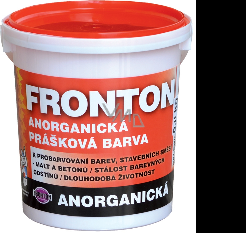 Tmavší odstín: 10 kg barvy Fronton se vsype do 5 l měkké vody a dobře promíchá, po 2–3 hodinách se vzniklá kaše vmíchá do 50 l malířské barvy.