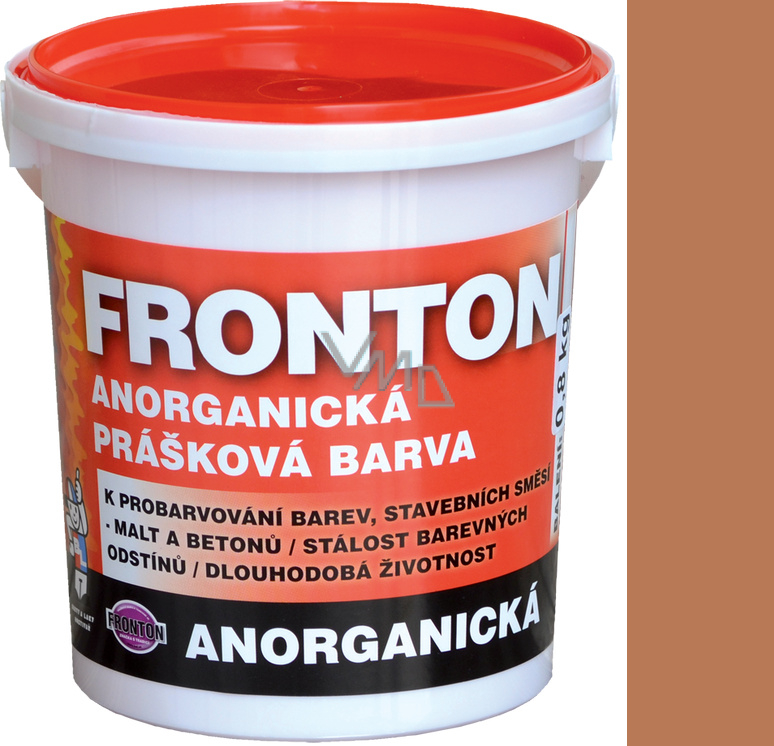 Tmavší odstín: 10 kg barvy Fronton se vsype do 5 l měkké vody a dobře promíchá, po 2–3 hodinách se vzniklá kaše vmíchá do 50 l malířské barvy.