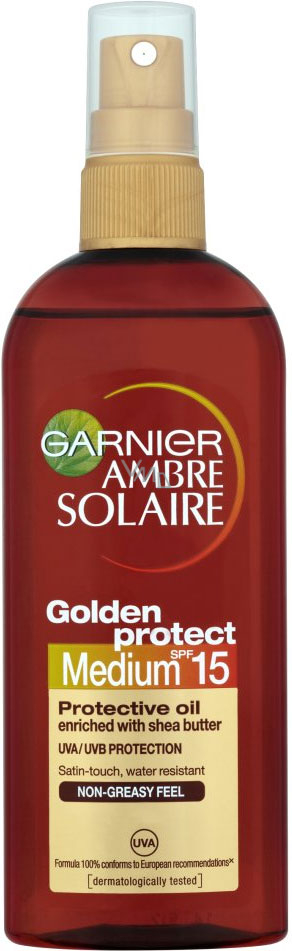 Vůbec poprvé nabízí Garnier Ambre Solaire ve svých opalovacích olejích ochranu UVA-UVB SPF 30, 15 a 10. Jejich inovativní složení je patentované. Exkluzivní fotostabilní systém filtrů Mexoryl™ XL chrání před poškozením způsobovaným sluncem a preventivně působí proti předčasnému stárnutí pleti. Oleje jsou obohacené o vitamin E, který působí antioxidačně. Jsou také voděodolné.
