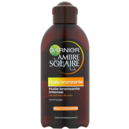 Tento opalovací olej od Garnier, již tradičně ceněný milovníky slunce, vyživuje a zjemňuje pokožku a dodává ji neodolatelný lesk. Garnier však doporučuje používat ochranné přípravky Ambre Solaire s vyššími faktory, které skutečně chrání pokožku před nepříznivými vlivy UVA/UVB záření. Tradiční opalovací olej obsahuje pouze ochranný faktror 2, který neposkytuje dostatečnou ochranu proti slunečnímu záření.