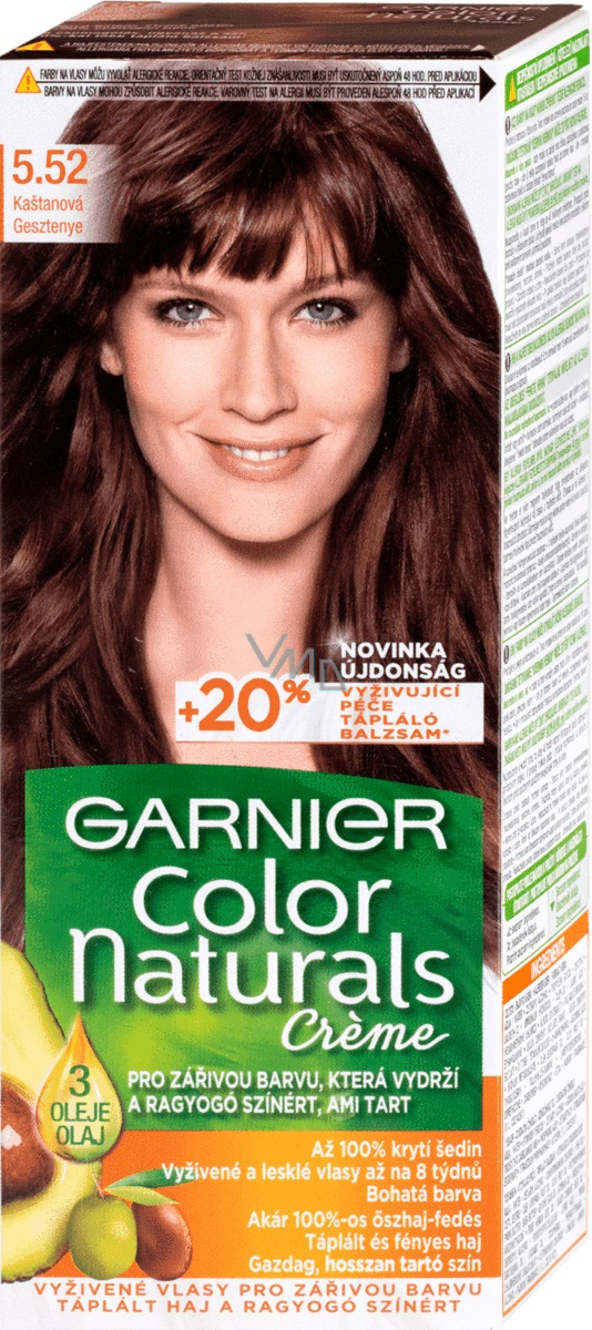 Poskytněte svým vlasům jediným přípravkem rovnou dvojitou ochranu. Dokáže to vyživující barva na vlasy Garnier Color Naturals Creme. V prvním kroku dodá vlasům sytou, dlouhotrvající barvu, která pronikne hluboko do vlasového vlákna a zakryje až 100 % šedin. V druhém pak díky pečujícím olejům poskytne vlasovému vláknu lesk, jemnost a úžasně hladký povrch.