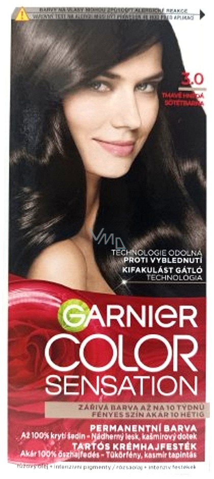 Garnier Color Sensation farba do włosów z delikatną kwiatową formułą 100% pokrywa siwe włosy i nadaje włosom perłowy blask. Oferuje intensywne i doskonałe krycie z wyjątkowo wyrazistym efektem kolorystycznym i długotrwałym działaniem. Kolor pozostaje żywy i promienny. Farba do włosów Garnier Color Sensation zawiera dotąd najwyższą zawartość aktywnych pigmentów i długotrwały blask.