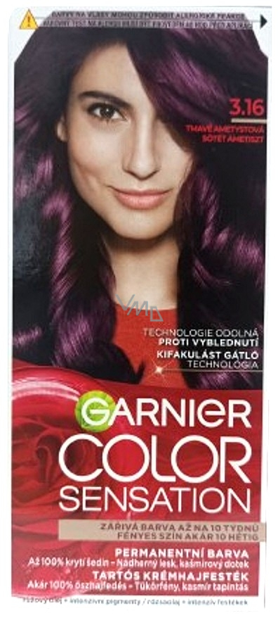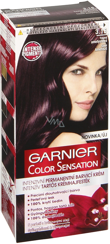 Garnier Color Sensation farba do włosów z delikatnym kwiatowym aromatem 100% pokrywa siwe włosy i nadaje włosom perłowy blask. Oferuje intensywne i doskonałe krycie z wyjątkowo wyrazistym kolorym efektem i długotrwałym działaniem. Odcień koloru pozostaje żywy i lśniący. Farba do włosów Garnier Color Sensation zapewnia najwyższą dotychczas zawartość skutecznych pigmentów i długotrwały blask.