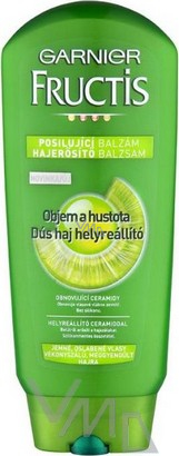 Komplex Bioaktivních ceramidů přispívá k obnově struktury vlasového vlákna. Vlasy se postupně zahušťují. Ovocné AH kyseliny prostupují do jádra vlasů a posilují je. Ženšen dodává vlasům vitalitu od kořínků ke konečkům. Garnier Fructis Objem a hustota navíc neobsahuje silikony, které zatěžují vlasy.