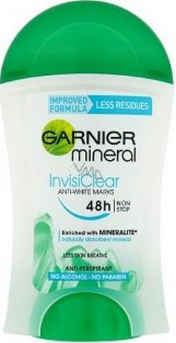 Látky, které jsou obsaženy v deodorantech, se zde nacházejí ve formě krystalů. Ty jsou vyrobeny z neškodné přírodní bauxitové rudy. Častou součástí je i hliník, protože je přirozenou složkou přírody. Tedy je všude kolem nás: ve vodě, kterou pijeme, v potravě, kterou jíme i ve vzduchu, který dýcháme. Z výskytu hliníku v antiperspirantech Garnier Mineral ale žádnou obavu mít nemusíte. V přípravcích je koncentrace hliníku omezena na minimum, ale i tak si Garnier Mineral zachovává silné deodorační účinky.