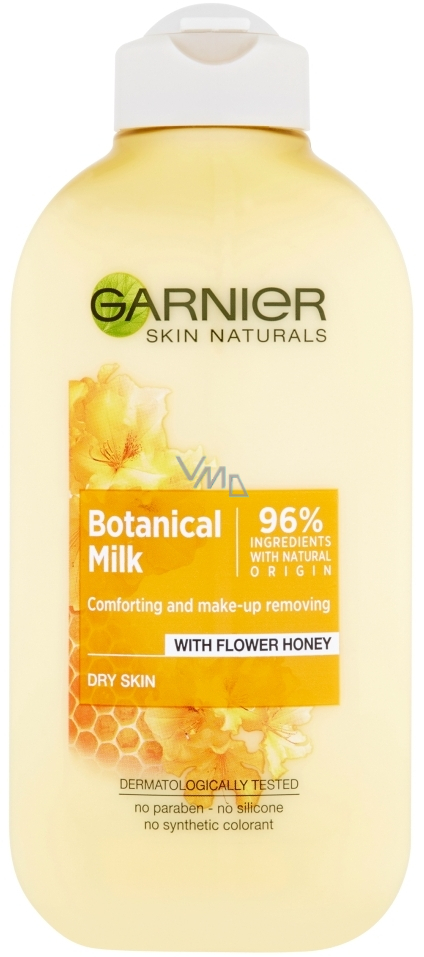 Odličovací mléko Garnier Skin Naturals Botanical je obohacené o výtažky z medu. Při jeho pravidelném používání bude vaše pleť nejen dokonale čistá, ale i sametově hebká a vyživená. Mléko snadno odlíčí i velmi odolný make-up bez podráždění pleti. Díky svému jemnému složení bez parabenů, silikonů a minerálních olejů bude pro vás tou nejlepší volbou.
