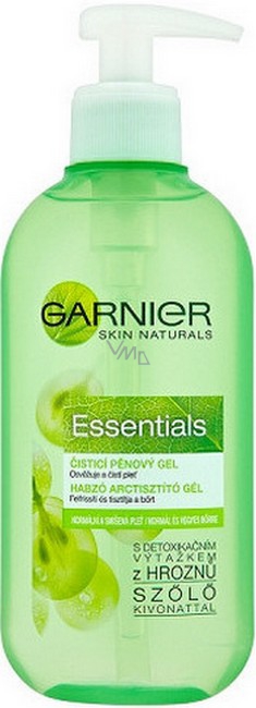 Čisticí pěnový gel Garnier Skin Naturals Essentials je perfektní pomocník pro odstranění nečistot a zbytků make-upu z pleti. Obsahuje čisticí složky, detoxikační výtažek z hroznů a pro-vitamin B5. Po použití je pleť čistá, hebká a svěží a lépe dýchá.