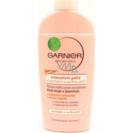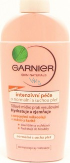Garnier tělové mléko obohacené o ovocné mikrooleje (meruňkový a palmový olej) a máslo z karité se okamžitě vstřebává a dodává pokožce příjemný pocit po celých 24 hodin.