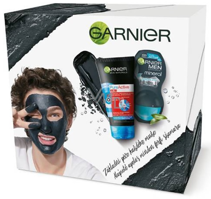 Garnier Skin Naturals Pure Active 3v1 aktivní uhlí proti černým tečkám 150 ml + Men Pure Active kuličkový antiperspirant deodorant roll-on pro muže 50 ml, kosmetická sada
