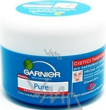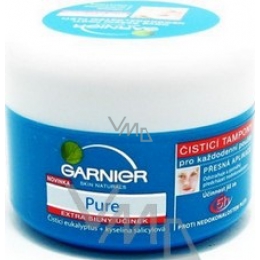 Čistící tampóny pro každodenní použití - účinné, praktické, hygienické. Vlhké čistící tampony účinně bojují proti nedokonalostem pleti a zároveň zmatňují pleť a to již za 5 hodin po použití. Obohaceny o čistící eukalyptus a optimální koncentraci kyseliny salicylové, tampony Garnier Pure okamžitě vysušují nedokonalosti, stahují póry a zmatňují pleť.