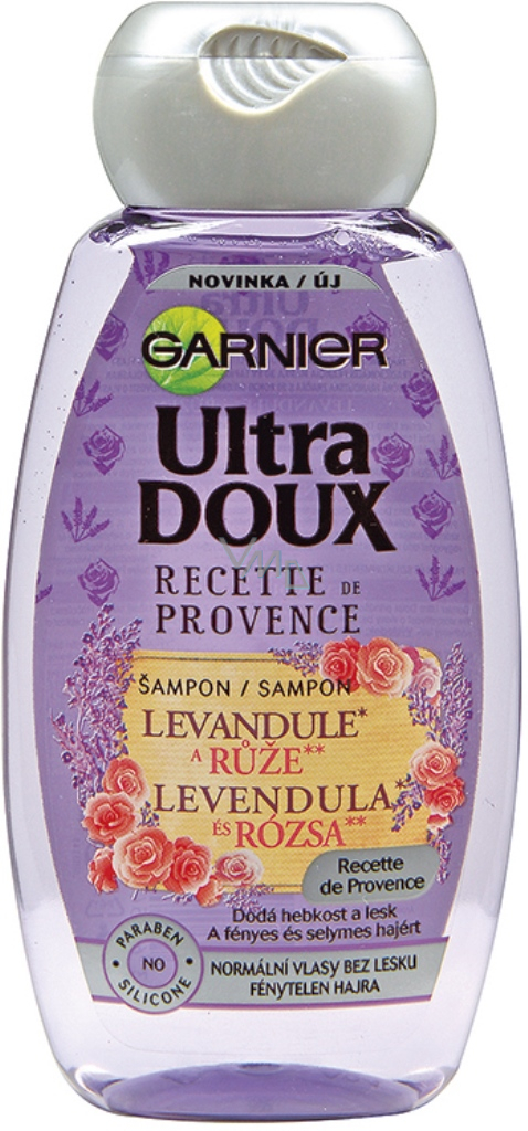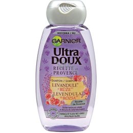 Garnier Ultra Doux přináší vašim vlasům přírodní výtažky z Provence, regionu jižní Francie. Pro péči o vlasy bez lesku spojuje levanduli (výtažek z levandulového oleje) pro její čistící vlastnosti a růži (výtažek z rostlin pěstovaných v Provence) pro hebkost a nádherný lesk.