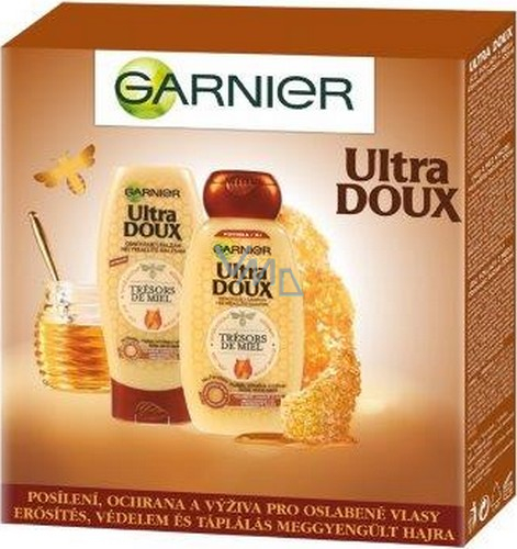 Garnier Ultra Doux Trésors de Miel šampon pro oslabené a lámavé vlasy 250 ml + Ultra Doux Trésors de Miel balzám pro oslabené a lámavé vlasy 200 ml, kosmetická sada
