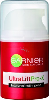 Intenzivní noční péče UltraLift Pro-X během noci vyplňuje vrásky, obnovuje strukturu pleti obličeje a krku a navrací jí ztracenou pružnost.