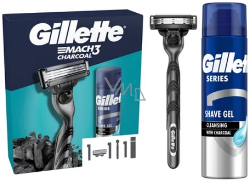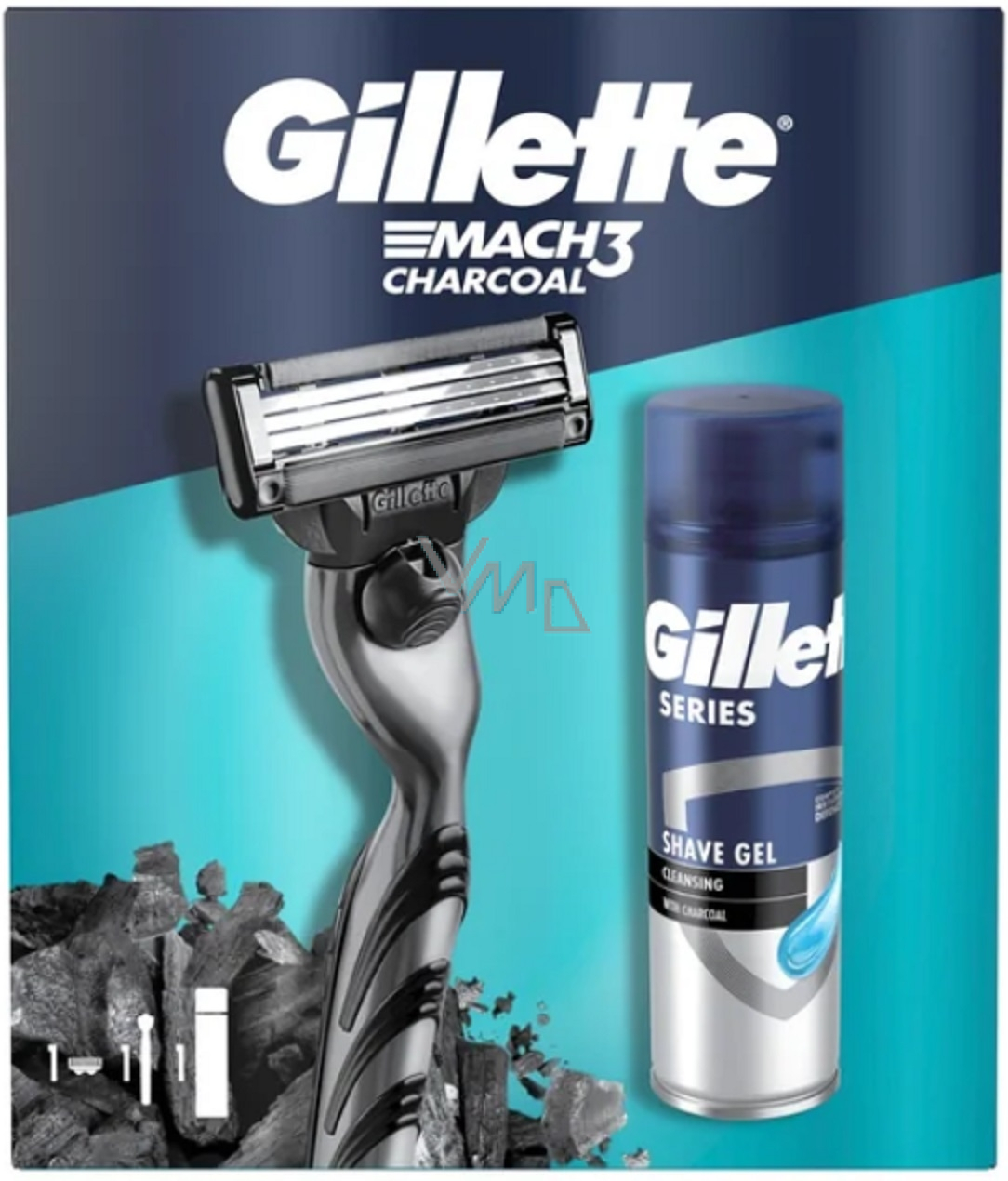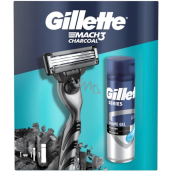 Gillette Mach3 maszynka do golenia + 1 wymienna głowica + żel do golenia z węglem drzewnym 200 ml, zestaw kosmetyków dla mężczyzn