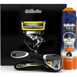 Součástí sady je pečující gel na holení z řady Fusion Sensitive. Spojuje v sobě dvě účinné složky pro hladké a bezbolestné oholení s péči o podrážděnou pokožku. Dosáhněte hladkého oholení od začátku až do konce. Příjemná gelová konzistence se snadno nanáší a po aplikaci hydratuje, změkčuje vousy, zlepšuje skluz strojku a chrání pokožku. Nové vylepšené balení s nerezavějícím dnem navíc umožňuje přesné dávkování. Dopřejte si luxus a pečujte o vaši pleť kvalitními výrobky od Gillette.