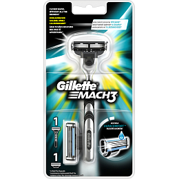 Męska ręczna maszynka do golenia Gillette Mach3 ma ostrza mocniejsze niż stal, które dłużej pozostają ostre (w porównaniu do maszynki Blue3). Te maszynki do golenia Gillette mają nawilżający pasek, który ślizga się po skórze i pomaga chronić ją przed zaczerwienieniem.