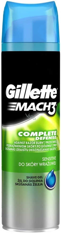 Gillette Mach3 Sensitive gel na holení zajišťuje špičkovou ochranu proti podráždění citlivé pokožky při holení. Pánský gel na holení Gillette Mach3 Complete Defense Sensitive vytváří bohatou ochrannou pěnu, která pomáhá zmírňovat pálení po holení. Optimalizované složení gelu chladí a uklidňuje pokožku. Gel na holení Gillette Mach3 Sensitive pomáhá předcházet podráždění při holení a chrání citlivou pokožku.