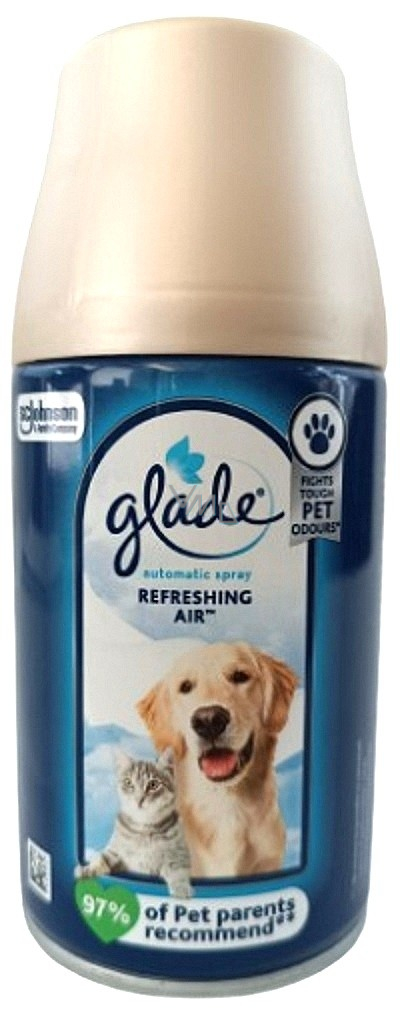Náhradní náplň pro Glade Refreshing Air mazlíčci sprej je ideální pro větší místnosti. Svěží vůně čistého prádla, chladivého vzduchu a Konvalinky. Aerosoly osvěžovače vzduchu Glade® účinně a rychle osvěží a provoní vzduch v každé místnosti. Bojuje proti nepříjemným pachům domácích mazlíčků.