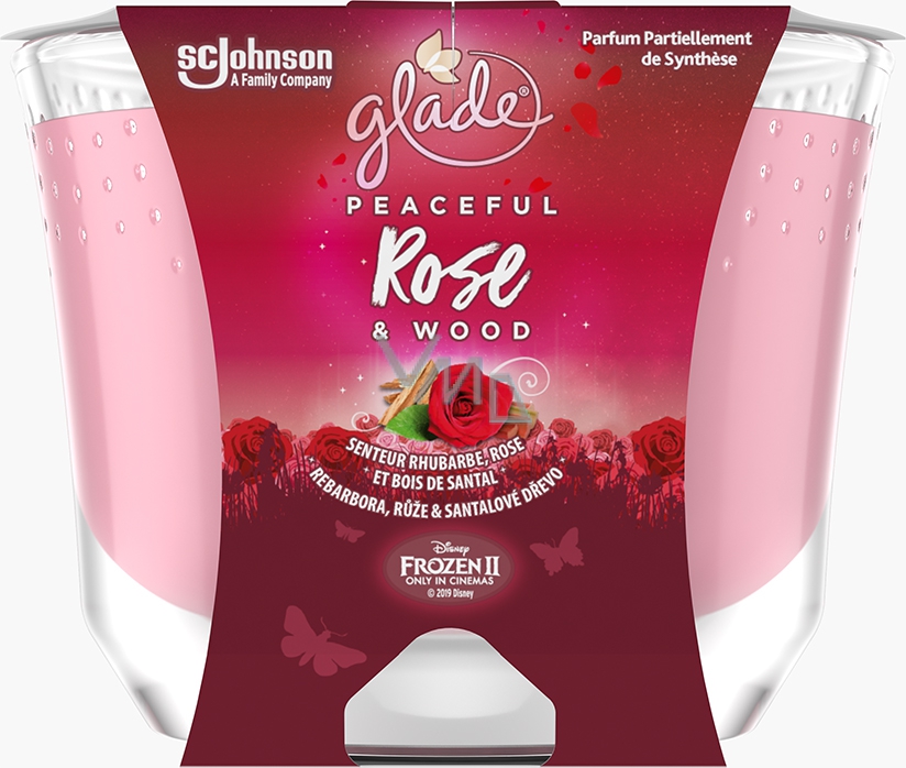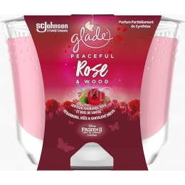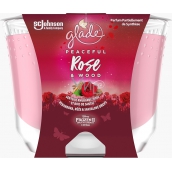 Glade Maxi Peaceful Rose & Wood s vůní rebarbory, růže a santalového dřeva vonná svíčka ve skle, doba hoření až 52 hodin 224 g