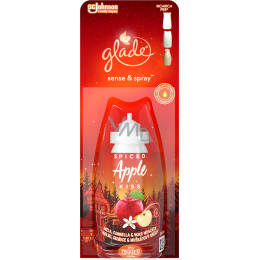 Glade by Brise Sense & Spray Spiced Apple Kiss automatický osvěžovač vzduchu se senzorem pohybu. Vpuste do vašeho domova svěží vůni. Do osvěžovače použijte originální náplně z kolekce Glade by Brise Sense & Spray.