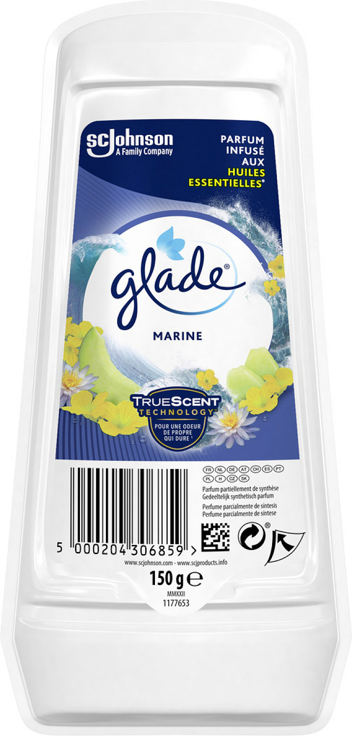 Glade by Brise Marine gel jest tradycyjnym odświeżaczem powietrza. Przynosi świeżość do Twojego domu na całe tygodnie. Po rozpakowaniu z ochronnej folii natychmiast pozbywa się pomieszczenia nieprzyjemnych zapachów i odświeża otoczenie Twoich domów.