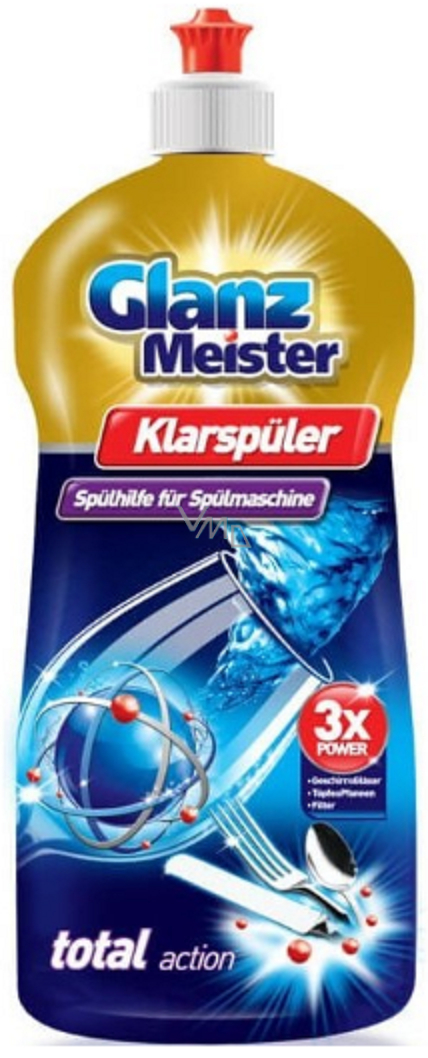 Dopřejte svému nádobí oslnivý lesk! Glanz Meister Total Action s novým 3× silnějším složením účinně zabraňuje tvorbě vodního kamene a zanechává nádobí dokonale suché a lesklé. Vhodné pro všechny druhy nádobí.
