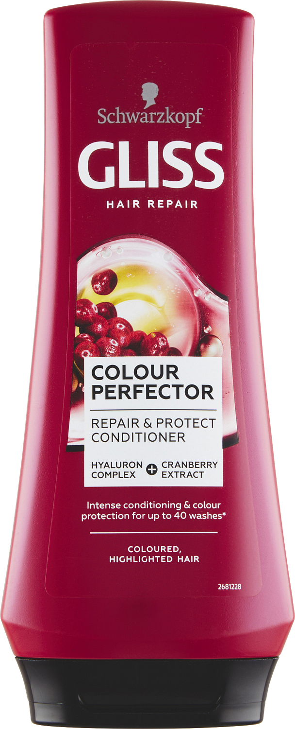 Receptura Gliss Kur z serum keratynowym regeneruje już powstałe uszkodzenia i zapobiega przyszłym uszkodzeniom. Ultimate Color balsam do farbowanych, tonowanych lub pasemkowanych włosów z technologią 3D-Color-Luminance zamyka i wzmacnia włókna włosów. Dla perfekcyjnej rozczesywaności, blasku i ochrony koloru aż do 12 tygodni (przy użyciu w połączeniu z szamponem).