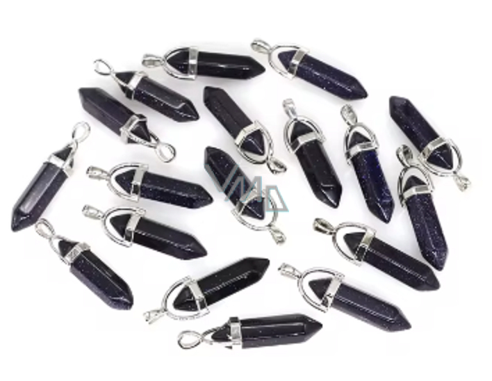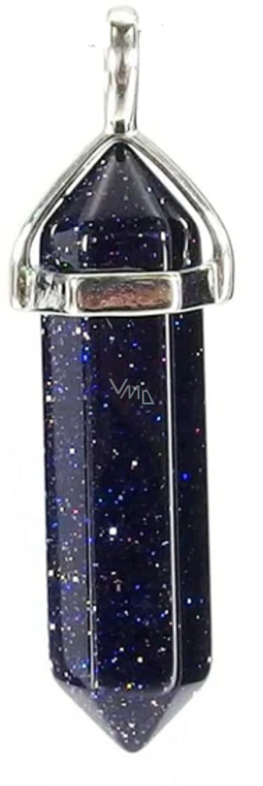 Goldstone modrý Avanturin kyvadlo šestihran přívěsek přírodní kámen 41 x 13 mm, kámen ambicí