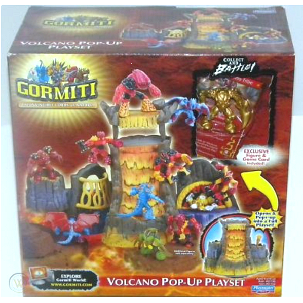 Nová herní sada Gormiti Volcano Pop-Up s exkluzivní figurkou Jedná se o herní sadu Gormiti Volcano Pop-Up. Dodává se s exkluzivní figurkou a herní kartou. Má vystřelující lávu, žvýkací čelist požírá útočníky, děrovač lávových kamenů sráží nepřítele a rozstřikovač ohně udržuje nepřítele zmatený. Uzavře se do přenosné sopky a poté se objeví v plné sadě. Je nový/zapečetěný v balení.