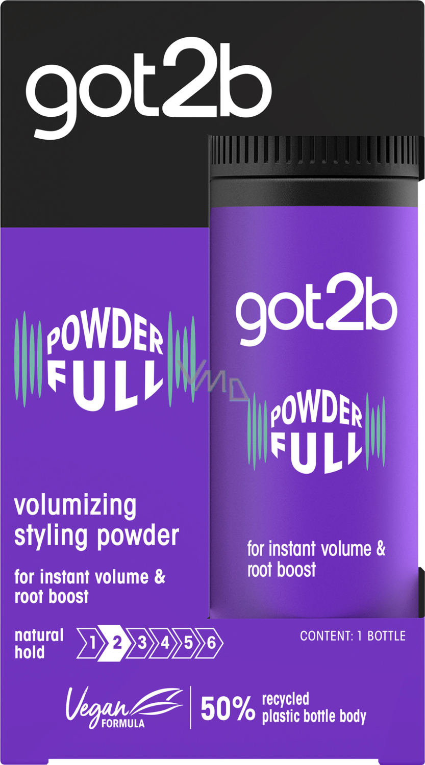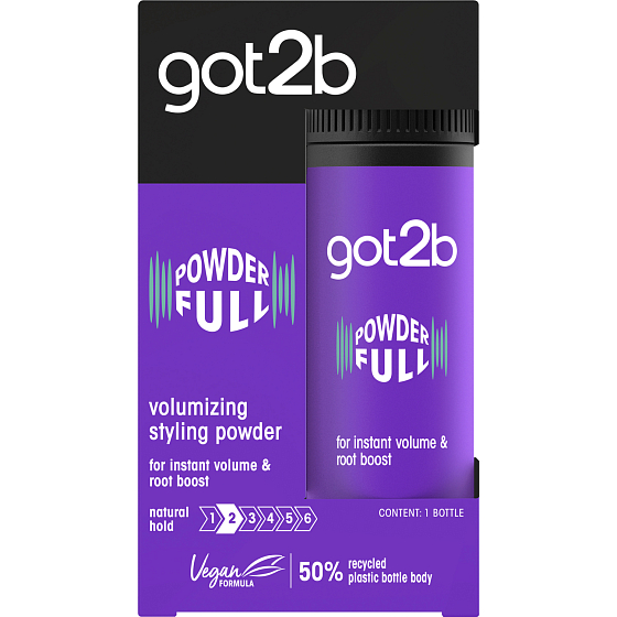 Podnieś objętość swojej fryzury na wyżyny! Got2b Powderful puder do stylizacji dla natychmiastowej objętości od nasady. Niezatapialna formuła nadaje teksturę każdemu pasmu włosów dla pełniejszego wyglądu z naturalnym utrwaleniem. Skład jest wegański*. Ciało butelki wykonane w 50% z recyklingowanego plastiku.