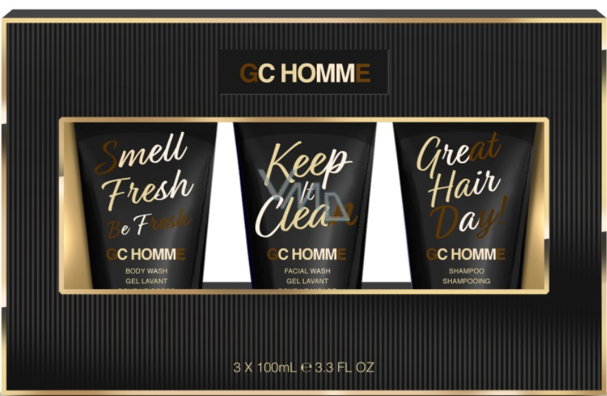 Grace Cole GC Homme żel oczyszczający do twarzy 100 ml + szampon 100 ml + żel myjący 100 ml, zestaw kosmetyczny dla mężczyzn