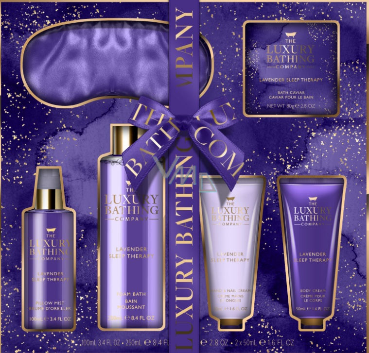 Luxusní relaxační sada pro zklidnění těla i mysli, o což se hravě postarají koupelové perly, pěna do koupele, vonný sprej na polštář, krém na tělo, krém na ruce a nehty a zejména luxusní saténová maska na oči pro nerušený spánek kdekoliv. Řada přímo stvořena k ničím nerušené relaxaci obsahuje esenciální oleje z levandule pro zklidnění těla a mysli a vyživení a zjemnění pokožky celého těla.