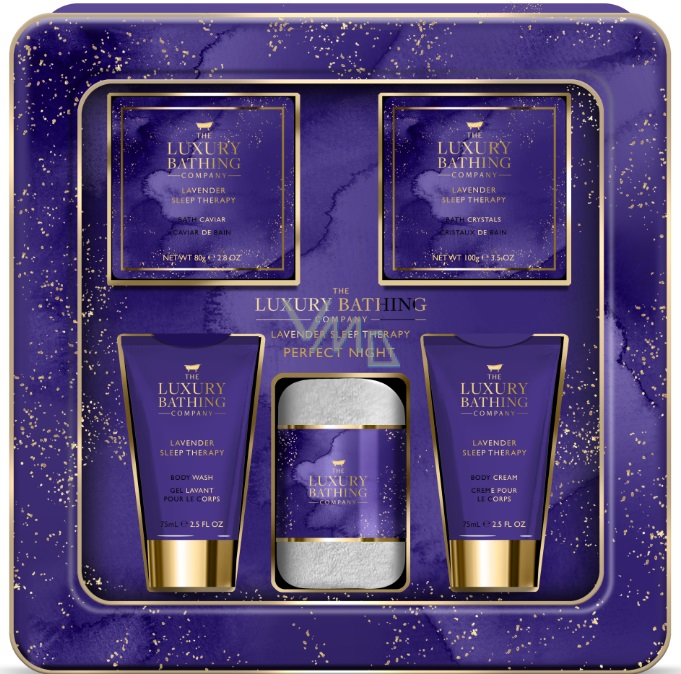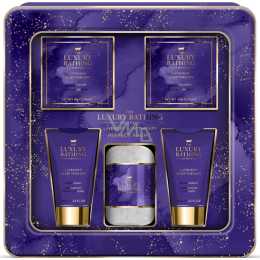 Krásná dárková sada mycího gelu, tělového krému, krystalů a perel do koupele uzavřených v plechové krabičce společně s flanelovou žínkou se stane tím pravým dárkem. Řada přímo stvořena k ničím nerušené relaxaci obsahuje esenciální oleje z levandule pro zklidnění těla a mysli a vyživení a zjemnění pokožky celého těla.