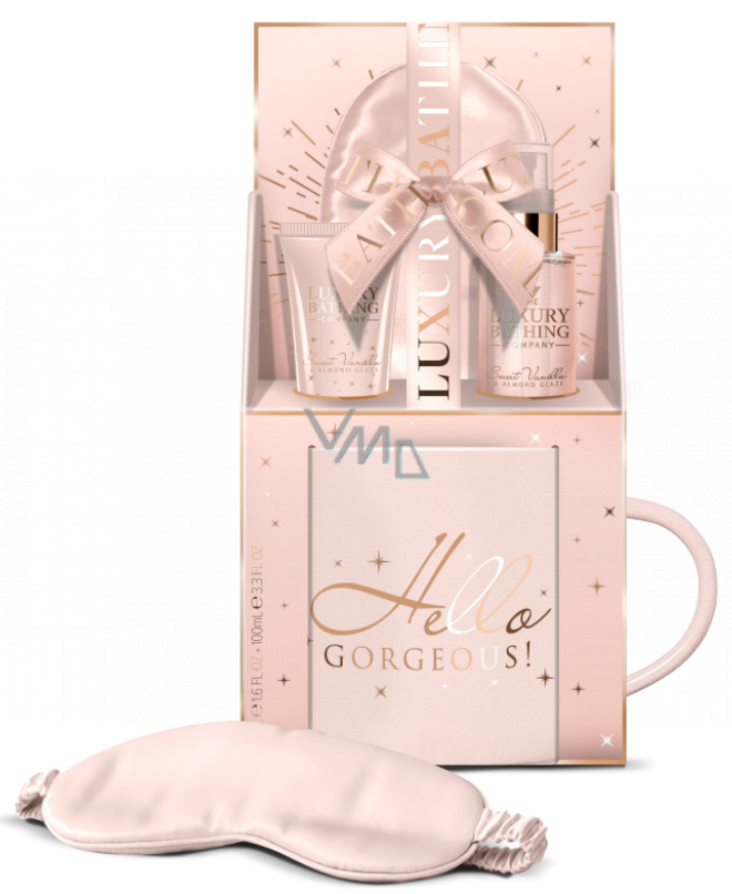 Užijte si perfektní relaxaci s dárkově zabalenou sadou masky na oči, vonné tělové mlhy, krému na ruce a velkého hrnku pro váš oblíbený nápoj. Neodolatelná kombinace vanilkového krému a čerstvých mandlí propůjčí vaší pokožce hebkost a jemnou vůni.