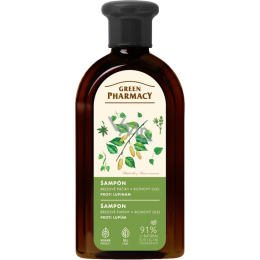 Green Pharmacy szampon przeciwłupieżowy z brzozą i olejem rycynowym skutecznie oczyszcza włosy i skórę głowy oraz pomaga zmniejszyć tworzenie się łupieżu. Ekstrakt z brzozy ma działanie przeciwzapalne i łagodzące, wspiera zdrową skórę głowy, podczas gdy olej rycynowy odżywia włosy, wzmacnia je i zapobiega ich łamliwości.