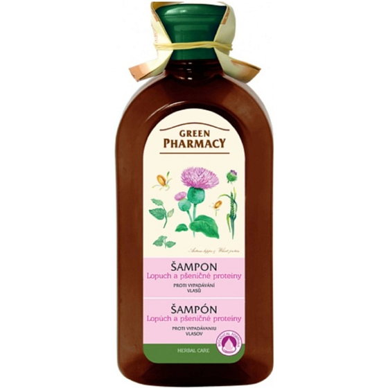 Green Pharmacy szampon przeciw wypadaniu włosów z łopianem i pszenicą jest przeznaczony do delikatnego, ale skutecznego mycia włosów ze specjalnym działaniem na wzmocnienie korzeni włosów i ograniczenie nadmiernego wypadania włosów. Ekstrakt z korzenia łopianu wspomaga ukrwienie skóry głowy, stymuluje wzrost włosów i poprawia ich wytrzymałość. Białka pszenicy odżywiają, nawilżają włosy i nadają im zdrowy wygląd.