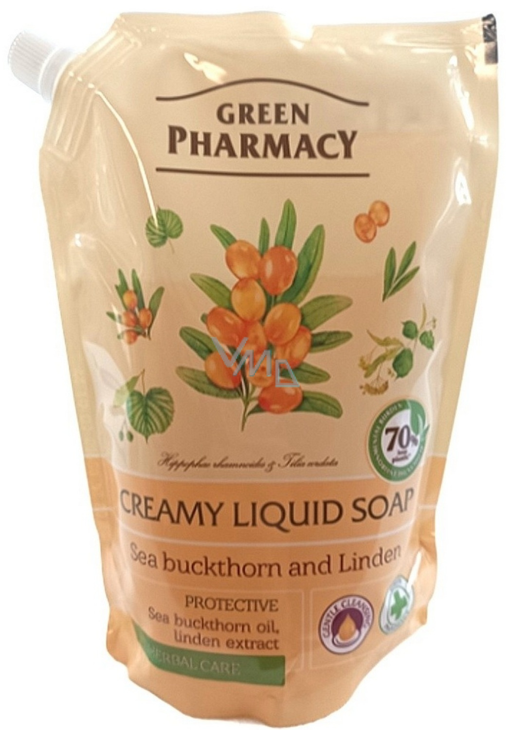 Green Pharmacy Płynne mydło Rakytník i lipa – uzupełnienie 460 ml delikatnie oczyszcza skórę rąk, a jednocześnie pozostawia ją miękką, nawilżoną i przyjemnie pachnącą. Kombinacja oleju z rokitnika bogatego w witaminy i ekstraktu z lipy uspokaja i odżywia skórę, podczas gdy naturalny skład jest łagodny dla rąk i środowiska. Praktyczne opakowanie uzupełnienia oszczędza plastik i pieniądze.