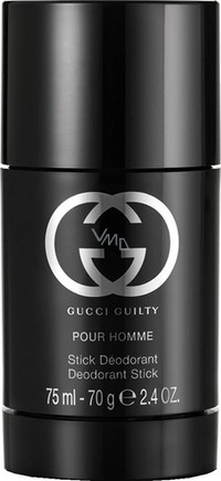 Pánská Gucci Guilty představuje moderní fougérovou kompozici, která provokuje a svádí svou mužnou smyslností. Stejně jako v případě dámské Gucci Guilty hrají i u pánského flakónu hlavní roli propletené litery G vycházející z ikonického loga. Souznění kovu a antracitového skla – v případě propojených G ve fialovém tónu – vytvářejí skutečně maskulinní pojetí, které ještě potvrzuje rafinovaně sofistikovaná lesklá černá krabička.
