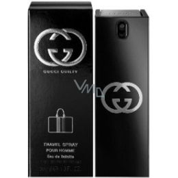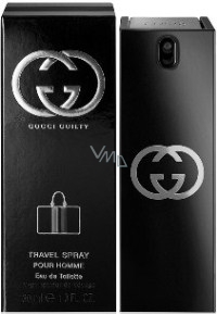 Pánská Gucci Guilty představuje moderní fougérovou kompozici, která provokuje a svádí svou mužnou smyslností. Stejně jako v případě dámské Gucci Guilty hrají i u pánského flakónu hlavní roli propletené litery G vycházející z ikonického loga. Souznění kovu a antracitového skla – v případě propojených G ve fialovém tónu – vytvářejí skutečně maskulinní pojetí, které ještě potvrzuje rafinovaně sofistikovaná lesklá černá krabička.