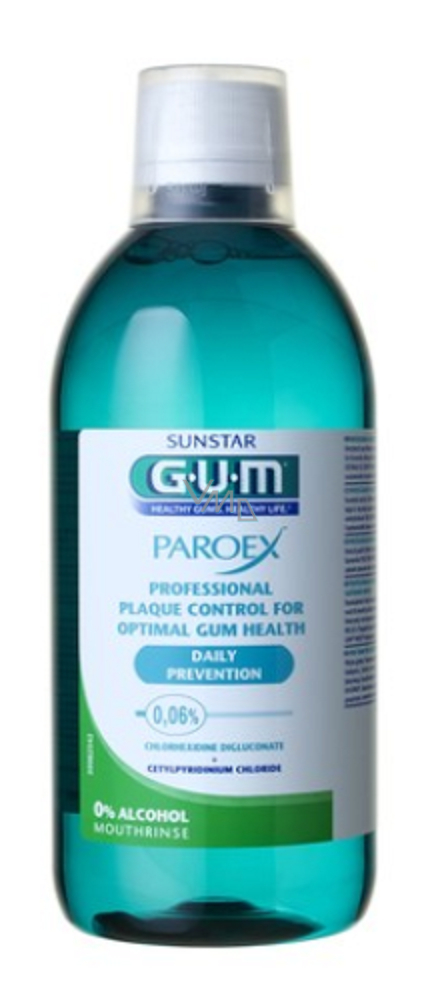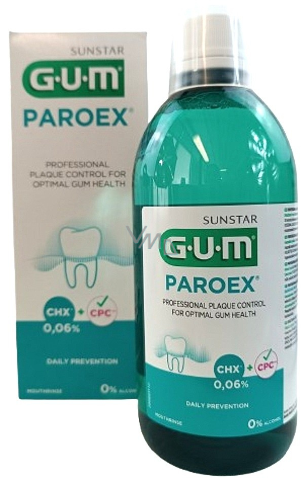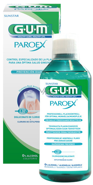 Gum Paroex woda ustna, płukanie CHX 0,06% do profesjonalnej kontroli płytki i długoterminowej ochrony dziąseł przy pierwszych objawach zapalenia dziąseł 500 ml