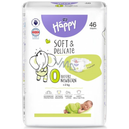 Bella Happy 0 Przedwczesne Noworodki od 0 - 2 kg jednorazowe pieluchy dla wcześniaków i dla noworodków z niską wagą urodzeniową 46 sztuk