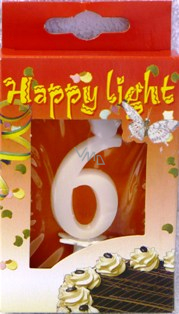 Świeczka tortowa w kształcie cyfry 6.
