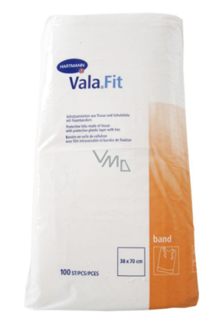 Jednorázové ochranné bryndáky ValaFit k ochranně ošacení, povlečení, prádla a zachycení zbytků potravy a tekutin. Bryndáky mají kulatý výstřih pro jednodušší použití a integrovanou ochrannou foliovou vrstvu.