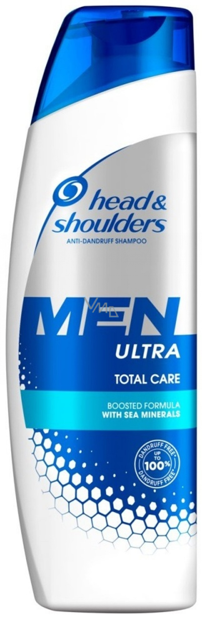 Šampon na vlasy pro muže Ultra Total Care s koncentrovanými hydratačními složkami a mořskými minerály obsahuje vylepšené složení pro pocit ultra čistoty. Odstraňuje z pokožky hlavy a vlasů až 100 % lupů a chrání je před vznikem nových. Vymývá nečistoty, mastnotu a zanechává pocit čistoty po dlouhou dobu. Díky jemnému složení a vyváženému pH je Head&Shoulders Men šampon na vlasy Ultra Total Care vhodný pro každodenní péči.