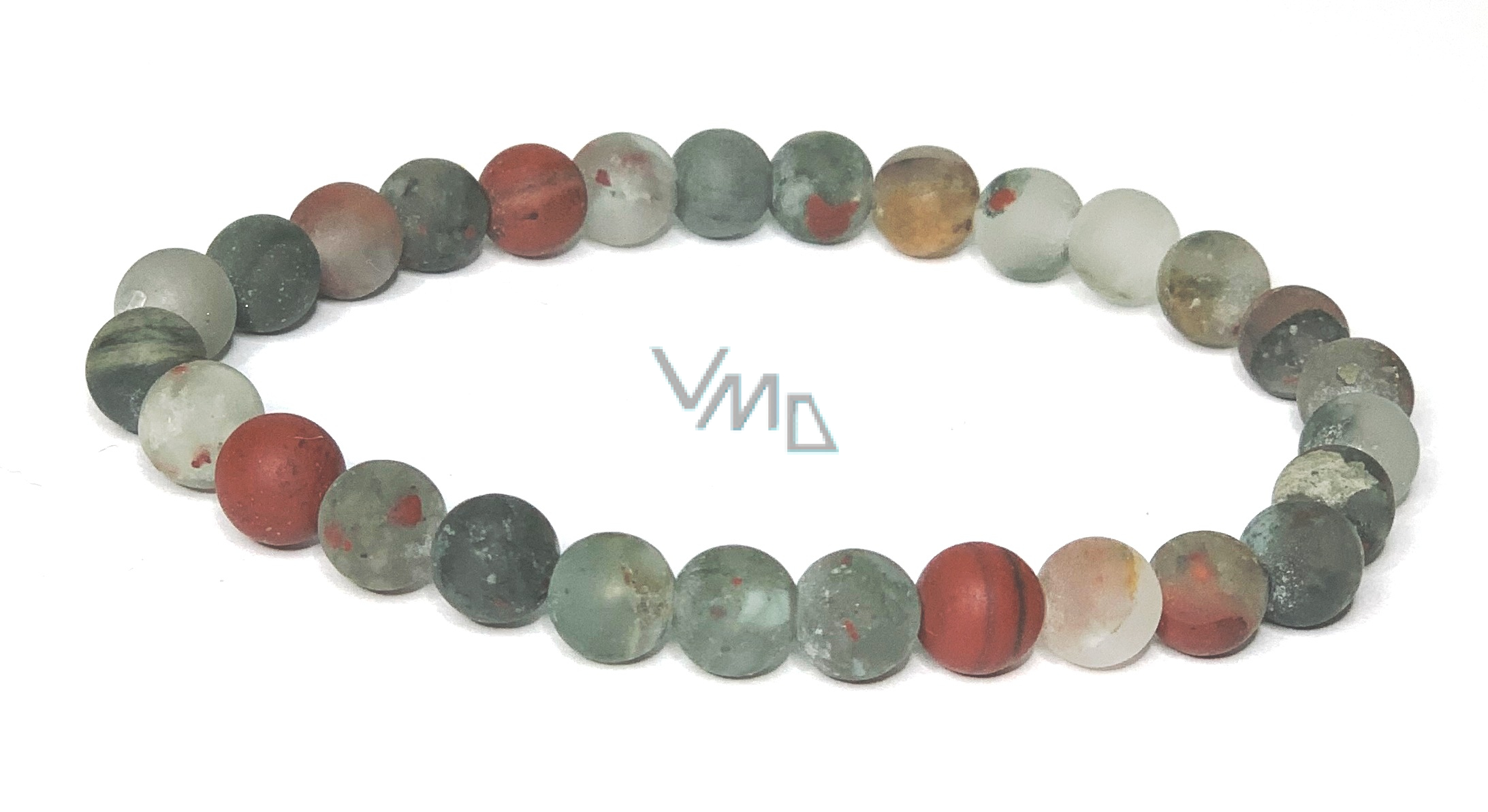 Heliotrop / Bloodstone matowy naszyjnik elastyczny naturalny kamień, kuleczka 6 mm / 16 -17 cm, kamień odwagi